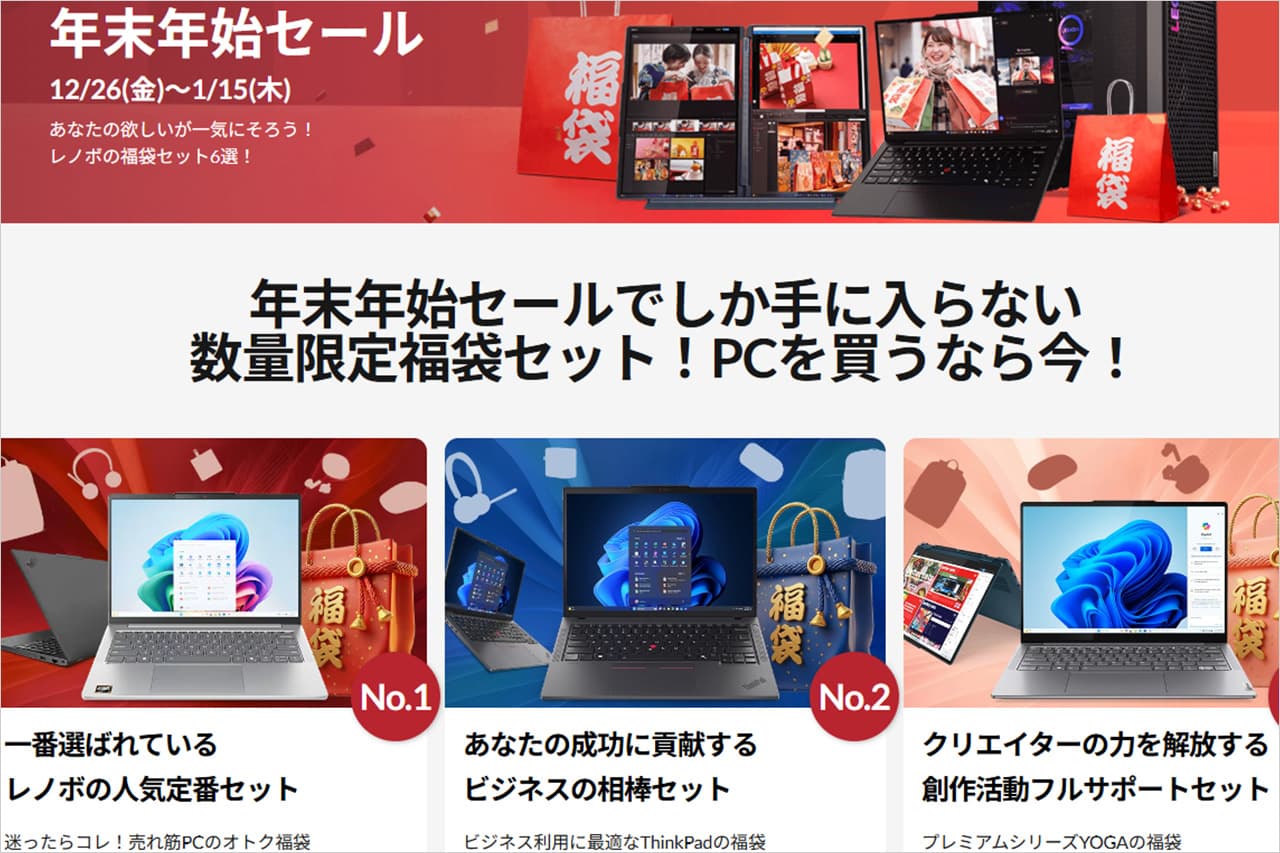 レノボ(Lenovo)の公式通販では、2025年~2026年のパソコン福袋が販売されています。