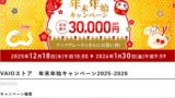 VAIO 年末年始キャンペーン2025-2026では、対象のノートパソコンを最大30,000円OFFで購入できます。